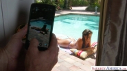 В ролях: Jynx Maze ![]() Девушка загорала и купалась в общем бассейне. Она прекрасно проводила время, пока не увидела нового соседа. Парень не смог устоять и таращился на сочную попку соседки в бикини. Он перекинулся несколькими словами с горячей девушкой и пошел к себе в комнату. Но ее попка недвала парню покоя и он решил сделать несколько фоток себе на память через окно. Фото вышли шикарными и мужчина не смог устоять соблазну и пошел мастурбировать в общий сан узел. Девушка в это время решила пойти и принять душ. Он еще из-за угла услышала пикантные звуки доносящиеся с туалета. Любопытство толкнуло ее вперед и горячая соседка застукала парня за мастурбацией. Она увидела, что парень дрочит на ее фотки в своем телефоне и решила помочь бедняге с сексуальным возбуждением, пригласив его в свою спальню.