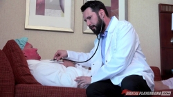 Врач оглянул больного и успокоил жену, что с ним все будет в порядке. Но разогретая сексом жена, начала сама приставать к врачу. Она была в средине процесса получения удовольствия когда мужу стало плохо. Потому придется доктору доводить ее до оргазма вместо мужа. Изменила больному мужу с доктором чуть ли не в одной комнате. |